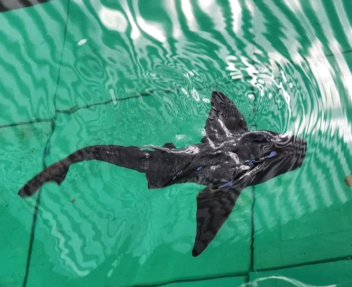 Stingarees are small, round-bodied rays often found resting quietly on sandy sea floors or hiding beneath the shallows.